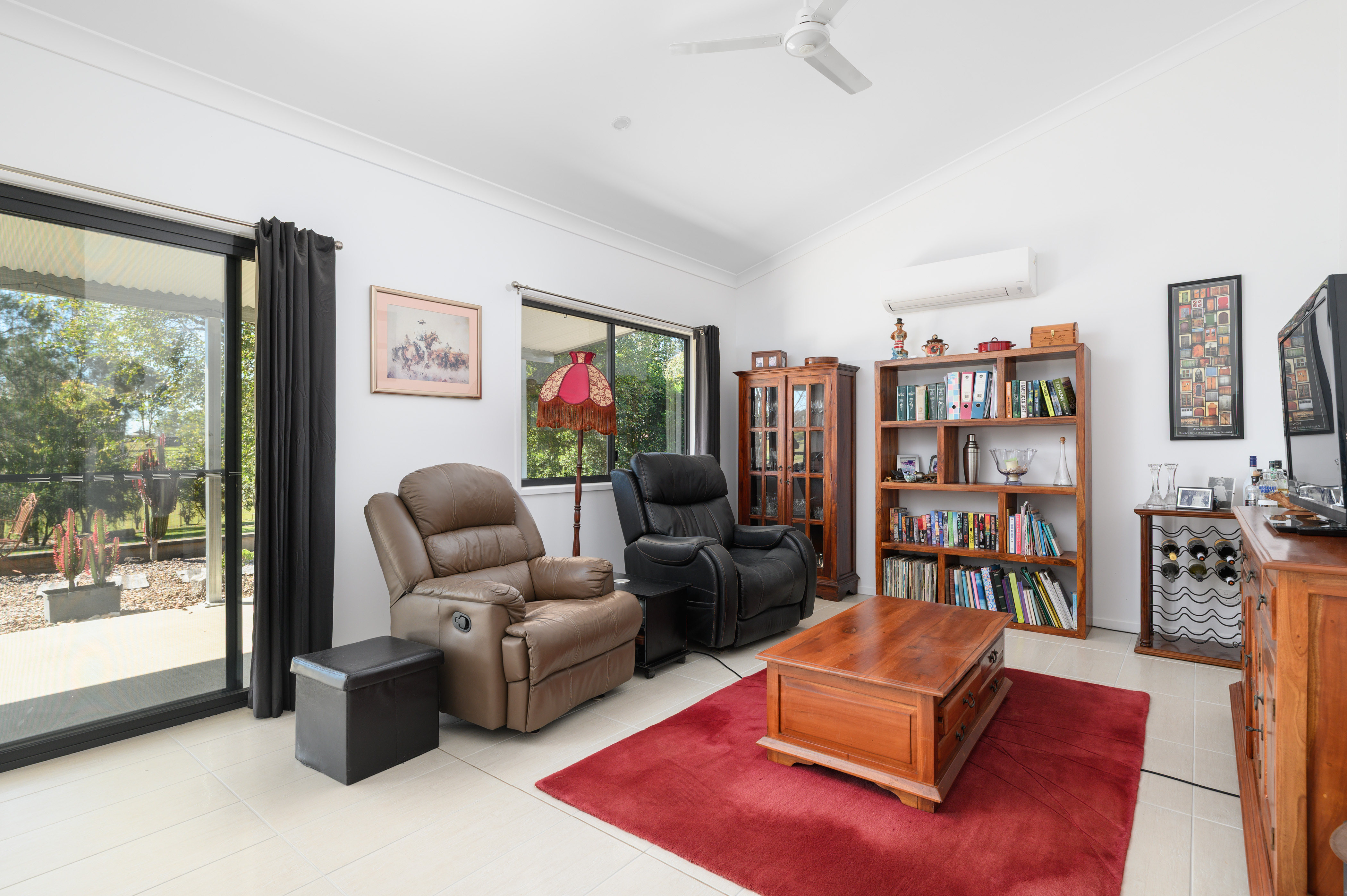 • Two tiled bedrooms with ceiling fans and large built-ins